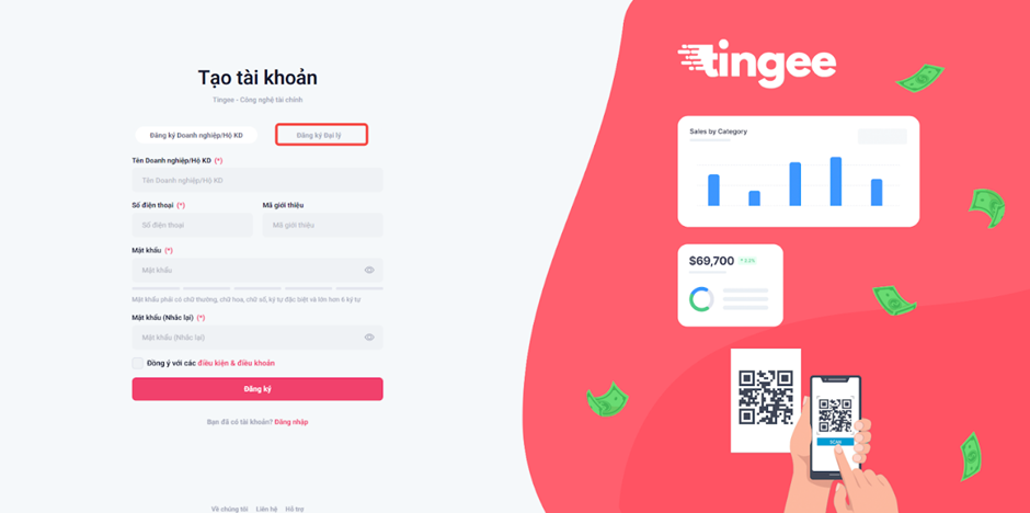 Bước 2: Chọn Đăng ký Đại lý