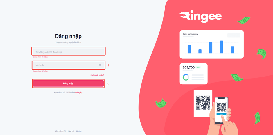 Bước 1: Truy cập https://app.tingee.vn và nhập tài khoản được cung cấp