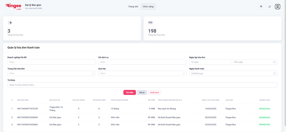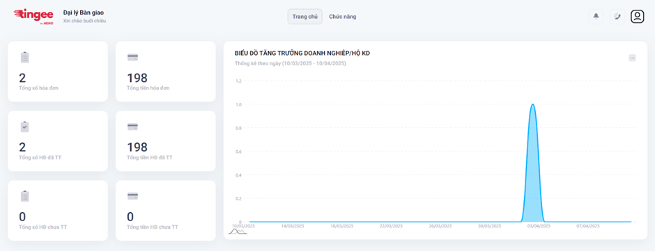Bước 2: Đăng nhập, giao diện Tingee hiển thị như sau