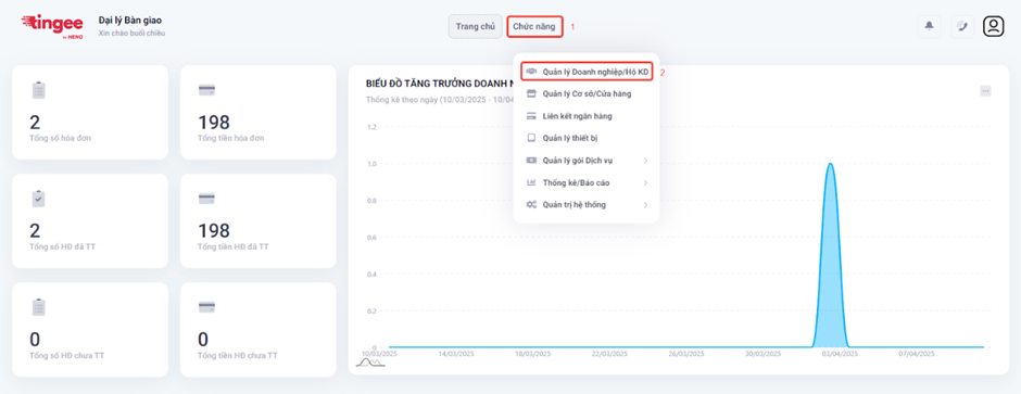 - Chọn Chức năng → Quản lý Doanh nghiệp/Hộ KD