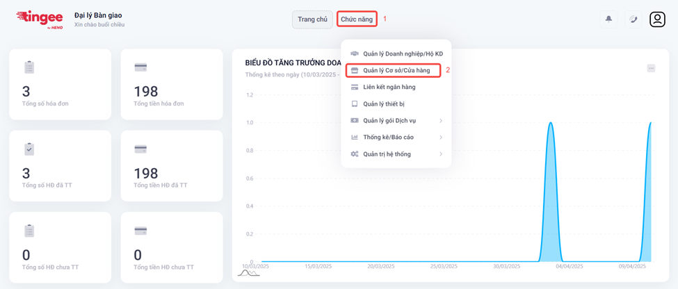 - Chọn Chức năng → Quản lý Cơ sở/Cửa hàng