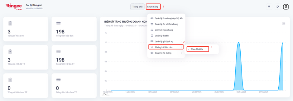 - Chọn Chức năng → Thống kê/Báo cáo → Theo thiết bị