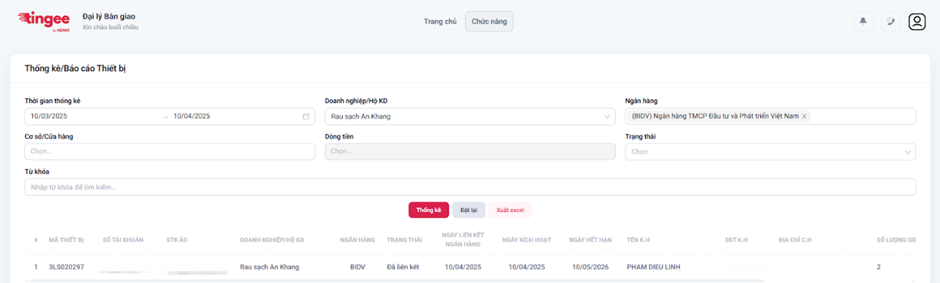 - Lọc theo: Doanh nghiệp/Hộ KD, loại thiết bị, từ khóa → Bấm Tìm kiếm